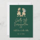 Cette invitation amusante du mariage de dinosaures Jurassique "Save the Date" est parfaite pour les couples qui cherchent à ajouter une tournure amusante, sur le thème du dinosaure à leur mariage, sauf la date Invitation faire-part. Doté de charmantes illustrations aquarelle d'un drôle de marié en dino T-Rex et d'un marié dans les tons beiges marron sur un arrière - plan élégant vert foncé, ce design de l'époque jurassique capture l'esprit ludique de votre grand jour. Le script de typographie moderne ajoute une touche d'élégance tout en conservant une touche légère. Facile à customiser avec vos noms, date mariage, cette invitation unique est sûr de ravir vos invités. Oeuvre originale de la talentueuse Catherine Sweetman. Parfait pour un bon moment rugissant !