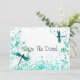 Cette libellule Turquoise Save The Date présente des libellules sur un arrière - plan de peinture. Idéal pour les Mariages Turquoises ou les Mariages d'été. Recherchez les invitations de mariage et de réception RSVP correspondant.
