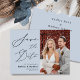 Dusty Blue Élégant Script Photo Moderne Mariage Minimaliste Enregistrer La Carte D'Invitation Date. Faites savoir à votre famille, à vos amis et à vos collègues que vous avez fixé une date pour votre célébration mariage avec ce mariage élégant, élégant et moderne, enregistrez la carte d'invitation de date. Tous les textes sont pré-arrangés pour que vous personnalisiez facilement et rapidement avec vos propres détails.
