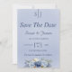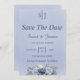 enregistrer les invitations de dateenregistrer la date mariage papeteriehiver enregistrer la date invitationbleu foncé et texte noirarrière plan bleu clairroses bleu et blancfloral élégant moderne simplemodèle personnalisabledeux modèles spiritueux