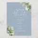 Cette élégante voûte botanique bleu poussiéreux fleurie or arc enregistrer la date de l'invitation peut être personnalisée avec vos informations en typographie chic avec votre site web mariage code QR et des détails sur l'inverse. Conçu par Thisisnotme©
