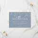 Ce mariage en feuille minimaliste bleu poussiéreux sauve la date design parfaitement incarne une esthétique romantique moderne. Avec un mélange classique d'arrière - plan bleu poussiéreux avec des motifs de feuilles blanches minimes, agrémenté d'un script de calligraphie simple associé à une police serif sobre. Le résultat est une sensation parfaitement polie pour votre mariage, s'assurant que chaque détail reflète l'élégance de votre histoire d'amour. Explorez notre sélection d'invitations de coordination, de dates de sauvegarde, de cartes d'enceinte, ainsi que la décoration de cérémonie et de réception dans la collection de Mariages Dusty Blue Minimal Leaf. La collection offre des options sans effort pour présenter une célébration du mariage vraiment belle et mémorable. Que votre événement soit le printemps, l'été, l'automne ou l'hiver, l'atmosphère vintage intemporelle de ces créations promet une façon charmante et enchantée d'honorer votre voyage unique ensemble. Nous espérons que vous tomberez amoureux de cette collection autant que nous. Pour toute question ou demande spéciale pour nos designs, n'hésitez pas à nous contacter. Nous sommes ravis de vous aider dans la mesure du possible.