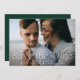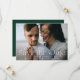 Annoncez votre mariage dans le style avec ces élégantes photos enregistrer les cartes de date. Le design comprend votre photo horizontale à fond saigné avec "Save the Date" en lettres blanches. Personnalisez la photo moderne enregistrer la carte de date avec vos noms, date mariage, emplacement du mariage et détails de l'invitation. Le dos de la carte contient des détails supplémentaires comme votre site mariage en lettres blanches sur un arrière - plan vert chasseur solide.