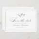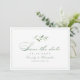 Cette élégante carte d'enregistrement de date présente un script classique et un design simple aquarelle de verdure entourée d'un cadre mince, idéal pour mariage classique, mariage vintage, mariage de printemps ou mariage d'été. Voir toutes les pièces correspondantes de la collection
