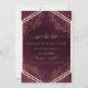 Carte de mise en demeure de mariage élégante avec design imitation feuille d'or et éléments botaniques sur fond rouge bordeaux foncé