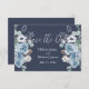 Save The Date Élégant Bleu foncé & Blanc floral Script