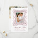 Announce your wedding with this elegant burgundy ornate frame photo save the date, featuring a hand-drawn antique picture frame that brings depth and warmth to the design. The front highlights the couple’s vertical engagement photo, with graceful calligraphy and refined serif lettering creating a balanced, formal layout. The back includes a horizontal engagement photo, along with custom text and a scannable QR code for sharing your wedding website with guests. This personalized photo save the date offers a romantic yet modern approach to announcing your wedding.