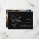 Un élégant mariage noir et blanc sauve la date avec une calligraphie romantique et tourbillonnant en lettres avec texte facultatif et une photo au dos. Parfait pour toute saison. Pour une personnalisation plus avancée de cette conception, cliquez sur le BOUTON OUTIL DESIGN BLEU ci-dessus !