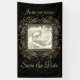 Save the Date und Ihr Foto in Elegant Gold Foil schauen Scrollwork Script auf Black. Worte können geändert werden, um Anzug Ihrer Veranstaltung.