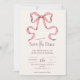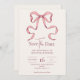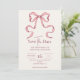 Annoncez votre prochaine célébration avec notre Elegant Pink Hand Drawn Bow Wedding Save the Date, un aperçu charmant de l'élégance et de l'amour à venir. Doté d'un arc joliment dessiné à la main dans des teintes roses douces et délicates, cette carte de date dégage élégance et style. Réalisée avec la plus grande attention aux détails, notre carte de datation save the date est parfaite pour les couples qui cherchent à donner un ton d'élégance intemporelle pour leur jour de mariage. Le luxueux stock de cartons et l'impression exquise assurent que chaque détail de la conception complexe est capturé de manière impeccable, ce qui en fait un gardien chéri pour vos proches. Customisez la carte avec vos noms, votre date de mariage et d'autres détails personnalisés pour refléter votre histoire d'amour unique. Que votre mariage soit une grande affaire ou un rassemblement intime, notre Elegant Pink Hand Drawn Bow Wedding Save the Date promet de captiver vos invités et de construire l'anticipation pour la célébration à venir. Commandez dès maintenant pour commencer votre voyage mariage avec une touche de grâce et de charme, afin que votre journée spéciale soit aussi inoubliable que votre amour.