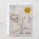 La belle Elegant Daisy Wedding Save the Date Faire-part Card donne une ambiance classe à la cérémonie de mariage à venir. Ce personnage fleuri garde le faire-part dateur dispose d'une photo florale d'une fleur de marguerite blanche, princesse carré coupe bague fiançailles diamant et collier de perle blanche.