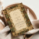 Un design botanique vintage intemporel avec feuillage complexe, feuilles de chêne et glands aux couleurs chaudes de l'automne. Parfait pour les couples qui planifient un élégant mariage rustique, une cérémonie boisée ou une rencontre sur le thème des chutes. L'oeuvre d'inspiration antique allie textures naturelles et charme classique, créant un design sophistiqué entièrement personnalisable avec vos détails mariages.