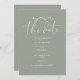Cette élégante invitation verte saute la date peut être personnalisée avec vos informations dans la typographie chic avec votre code QR de site mariage et les détails sur l'inverse. Conçu par Thisisnotme©