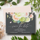 Belle aquarelle d'hydrangées blanches et vertes avec des roses roses et crème, marguerites, petites fleurs et feuilles créent ces mariages enregistrer les cartes de date avec vos détails en lettrage chic blanc sur un arrière - plan sombre. CORRESPONDANCE d'objets dans notre collection.