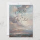 Mariage romantique et spectaculaire sauvez l'invitation de la date avec une peinture impressionniste d'un paysage côtier avec un ciel couvert de lumière douce et des couleurs romantiques avec un look peint. Les noms de couple dans un script de calligraphie sophistiqué. Vous pouvez modifier la taille de police et de texte dans l'outil de conception si vous le souhaitez ! Le choix idéal pour un mariage côtier, un mariage de automne, un mariage de club de campagne, un mariage luxueux ou un mariage à la plage.