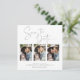 Écrit à la main Enregistrer la date Marbre Argent Carte photo multiple dans une police qui est élégant et évoque une sensation manuscrite romantique. Sur le dos, des veines à la mode argentée traversent le marbre classique. Conçu pour utiliser trois de vos photos préférées pour une personnalisation supplémentaire. Ajoutez facilement vos noms et dates pour un design vraiment personnalisé.