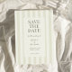 Créez votre propre mariage personnalisé, enregistrez les cartes datées avec typographie moderne en couleur vert olive sur arrière - plan motif rayé minimaliste.