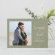 Annoncez votre journée spéciale en style avec cette enregistrer la carte mariage date avec un design moderne, simple et élégant. Le modèle photo minimaliste est associé à la typographie classique et à la calligraphie classe pour un look intemporel. Parfait pour un mariage de destination, ce design feuille chic de palme exhale les vibes de mariage de plage et la verdure botanique. Offrez-vous une esthétique contemporaine minimale et donnez le ton de votre fête inoubliable !