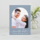 Save The Date Élégant Script Arch Photo Dusty Blue Mariage