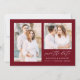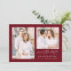 Annoncez vos prochains mariages avec style avec notre carte "save the date" photo à l'écriture élégante. La carte "save the date" élégante présente 2 de vos photos de fiançailles avec "save the date" dans une écriture calligraphique moderne blanche sur fond burgundy. Personnalisez la simple carte "save the date" en ajoutant vos noms, date de mariage et lieu de mariage. La carte "save the date" minimaliste se retourne sur un fond burgundy uni ou une couleur de votre choix.