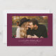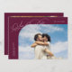 Elegant and stylish save the date card featuring a script text that says "save the date." One photo in the font and one on the back. The background is cranberry.