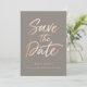 Cette date de sauvegarde simple et élégante est dotée d'une police de script fausse feuille dans une jolie palette de couleur or gris et rose.