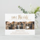 Elégant mariage or 4 photo enregistrer les cartes de date avec un titre de script de feuille d'or faux moderne. Personnalisez facilement ce mariage d'or enregistrez la date avec vos images et les détails du mariage, y compris un site Web mariage.
