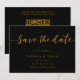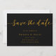 Cette élégante carte mariage noir et or à la fine pointe de la technologie est parfaite pour un mariage moderne. Le design simple présente une élégante calligraphie dorée sur un arrière - plan noir. La carte comprend également un code QR pour le site web mariage au verso.