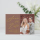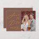 Terracotta Elegant Gold Script Modern Photo Wedding Enregistrer La Date Invitation Card. Faites savoir à votre famille, à vos amis et à vos collègues que vous avez fixé une date pour votre célébration mariage avec ce mariage élégant, élégant et moderne, enregistrez la carte d'invitation de date. Tous les textes sont pré-arrangés pour que vous personnalisiez facilement et rapidement avec vos propres détails.