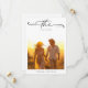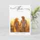 Alors que le soleil trempait à basse altitude derrière les arbres, projetant de la lumière dorée sur vos épaules, vous vous regardiez et saviez, c'est là que commence l'éternité. Ce moment paisible et parfait mérite plus qu'un simple souvenir. Il mérite une remise à jour qui raconte votre histoire. Ce mariage boho rustique garde-la-date capture votre amour avec une photo de coucher de soleil rêvée et des détails de script élégants. Doté d'une calligraphie manuscrite et d'une disposition moderne, il s'agit d'un magnifique mélange de style intemporel et de romantisme profond. Le design recto verso offre de l'espace pour votre photo préférée et tous les détails essentiels, ce qui le rend personnel, chic et inoubliable. Idéal pour les couples qui planifient un faire-part mariage numérique élégant et abordable, cette carte est la façon idéale de donner le ton pour votre journée. Que ce soit pour une esthétique en noir et blanc ou pour une ambiance douce et dorée, cette élégante photo save-the-date est aussi romantique et réelle que votre amour.