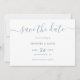 Annoncez votre mariage bleu poussiéreux avec ces cartes de date minimalistes, mais élégantes. Personnalisez facilement en ligne. Objets correspondants disponibles pour compléter ce mariage bleu poussiéreux enregistrer la carte de date avec une police de script moderne.