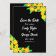 Ce mariage de tournesol élégant, sauf l'invitation à la date, est parfait pour un mariage moderne à fleurs. Le design simple présente des tournesols jaunes et oranges fleuris avec une élégante typographie blanche sur un arrière - plan noir.