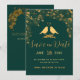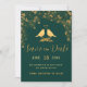 Save The Date Élégant Vert Émeraude & Fleurs Dorées Oiseaux Save