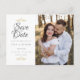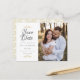 Diese elegante Save the Date-Karte zeigt Ihr Foto und wunderschöne Goldtauben und Herzen über einem Drehbuch Save the Date und Ihre Namen, Datum und Ort. Die Rückseite weist ein Tauben- und Herzmuster auf. Sie können die Hintergrundfarbe auf der Vorderseite personalisieren und auf Anzug umkehren. Entwickelt von Thisisnotme©