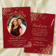 Ces belles cartes sont une excellente façon de faire savoir à vos amis et à votre famille de sauver la date pour votre prochain mariage. Elles présentent un design en marbre rouge pourpre et or avec votre photo dans un cadre ovale entouré de garnitures en dentelle en faux feuille doré et de lettres de script fantaisie avec vos noms, date mariage et emplacement. Le dos a un graphique mignon "crayon us in" avec de l'espace pour une note qui peut inclure un site Web où vos invités peuvent aller pour plus d'informations.