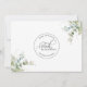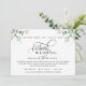 Invitez vos amis et votre famille à rejoindre votre mariage intime "virtuel/en ligne" avec cette invitation élégante et romantique. Superbe phrase "Mariage Virtuel" en calligraphie moderne bloc et manuscrite. Une délicate verdure florale peinte à la main encadre vos détails avec un feuillage en tons de vert, d'olive, de bleu poussiéreux et de sarcelle. La phrase en haut "Rien de fantaisiste, mais plein d'amour" peut être changée en n'importe quelle autre phrase que vous aimez ou même effacée. Ajoutez votre message, date, heure et votre adresse virtuelle pour que tout le monde puisse se joindre à la célébration ! Dos avec un logo élégant portant les noms complets des mariés et des détails de verdure dans les coins. Une atmosphère moderne, romantique et élégante.