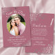 Ces belles cartes sont une excellente façon de faire savoir à vos amis et à votre famille de sauver la date pour votre prochain mariage. Elles présentent un élégant design de couleur rose mauve ou rose poussiéreux avec votre photo dans un cadre en forme d'ovale entouré de boucles et de tourbillons gris argent dentés, et des lettres de script fantaisie avec vos noms, date mariage et emplacement. Le dos a un graphique mignon "crayon us in" avec de l'espace pour une note qui peut inclure un site Web où vos invités peuvent aller pour plus d'informations.