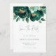 Emerald Green et Gold Florals QR Code Mariage. Superbes fleurs vertes et feuillage et un élégant script pour Save The Date. Le reste du texte que vous pouvez facilement personnaliser avec vos détails. Ajoutez votre code QR à votre site Web mariage au verso ou supprimez ceci et le texte au verso si cela n'est pas nécessaire. Disponible numériquement ou imprimé.