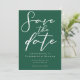 Cette solide carte d'invitation Save the Date présente un script blanc classique pour un couple se marier dans une forêt ou un autre lieu naturel. Célébrez votre amour avec cette couleur tranquille et coordonnez avec notre collection de typographie minimaliste correspondante.