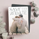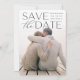 Annoncez votre date de mariage dans un style inoubliable avec ces photos élégantes et modernes enregistrer les cartes de date, avec un fond de saignement vertical ou une photo orientée portrait avec "enregistrer la date" recouvert de riches lettres noir de charbon de bois sur le dessus. Vos noms, date mariage et emplacement mariage apparaissent à côté dans les lettres modernes. Personnalisez le dos avec des détails supplémentaires, comme votre site Web mariage.