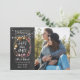 Cette photo boho enregistrer la carte de date comprend votre photo spéciale et des lumières à cordes sur un joli pot en maçon qui entoure votre enregistrer le message de date au-dessus de vos noms, date et lieu sur un arrière - plan de tableau noir. Conçu par Thisisnotme©