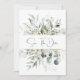 Déclaration rustique avec eucalyptus et petites fleurs blanches et baies blanches. Personnalisez avec vos propres informations