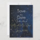 Ces cartes d'enregistrement de date pour une soirée élégante sont parfaites pour tout mariage élégant en soirée. Beau bleu foncé sur tout le fond avec des lumières lumineuses et des lucioles brillant sur les feuilles d'arbre et en arrière-plan. N'oubliez pas de chercher nos articles assortis vendus ici : https://www.zazzle.com/store/heritagematters/products?cg=196873255086485540