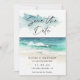Faire part de mariage moderne à l'aquarelle sur l'océan de la plage - Un magnifique faire-part de mariage à l'aquarelle représentant un océan turquoise et une plage de sable blanc. Au verso du faire-part figure une photo du couple heureux et un code QR qui renvoie à votre site web de mariage.