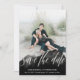 Magnifique et unique carte de faire-part de mariage avec un overlay en gossamer noir avec la mention 'save the date' découpée pour que votre photo apparaisse à travers dans un joli script tourbillonnant. Ajoutez une autre photo au verso ainsi que les détails de votre mariage.