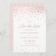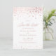 Ajoutez une touche de luxe et d'éclat à votre annonce de mariage avec cette superbe carte "Save the Date" avec confettis et feuille de faux or doré. Elle présente un magnifique motif de confettis avec des accents élégants en feuille de faux or rose. L'écriture délicate et fluide complète parfaitement les détails scintillants, créant une annonce de mariage intemporelle.