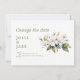 Informez vos invités de vos nouveaux plans avec ce changement élégant de la carte de date. Doté d'une délicate illustration de fleur de pomme en blanc et vert tendre, ce design utilise une typographie serif moderne en vert olive sur un arrière - plan blanc propre pour un look frais et minimaliste. La carte communique clairement votre ajournement avec une touche personnelle et douce, parfaite pour les mariages de printemps ou de jardin. L'envers est doté d'un vert olive solide pour une finition sophistiquée.
