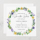Il s'agit d'un mariage fleur sauvage rustique simple et sucré, sauf l'invitation de la date. La conception comprend une couronne faite de divers fleurs sauvages printaniers, dont des jonquilles jaunes, des pansies violettes, des trèfles, de la lavande, des pois doux, des pissenlits, des tulipes et des fougères et des lierres. Il comprend également quelques coccinelles, une douce libellule et un espace pour un message et une photo à l'arrière. Il serait parfait pour un événement décontracté de printemps ou d'été. Customisez le texte et la photo au besoin. Veuillez contacter le concepteur pour toute question concernant ce design ou pour tout produit correspondant qui n'est pas disponible.