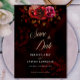 Save The Date Fleurs noires rouge foncé élégantes Mariage