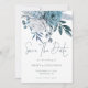 Floraux bleu Dusty moderne QR Code Mariage. Fleurs magnifiques dans les tons bleu et blanc et un élégant script set pour Save The Date. Le reste du texte que vous pouvez facilement personnaliser avec vos détails. Ajoutez votre code QR à votre site Web mariage au verso ou supprimez ceci et le texte au verso si cela n'est pas nécessaire.